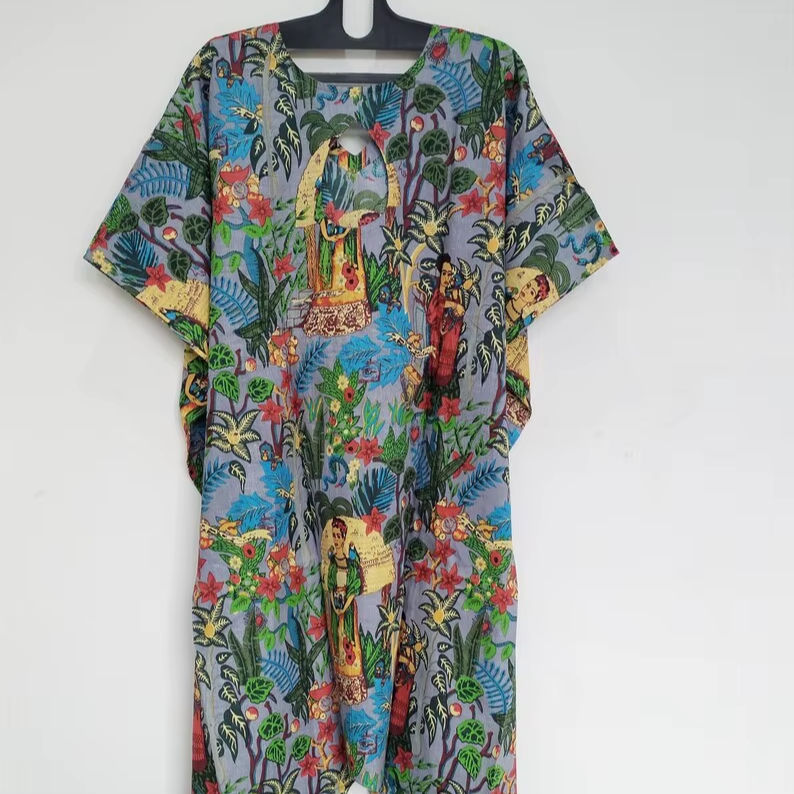 ชุดเดรสผ้าฝ้ายพิมพ์ลายทำมือ สไตล์อินเดีย สำหรับใส่ไปชายหาด งานเทศกาล หรือสไตล์โบฮีเมียน