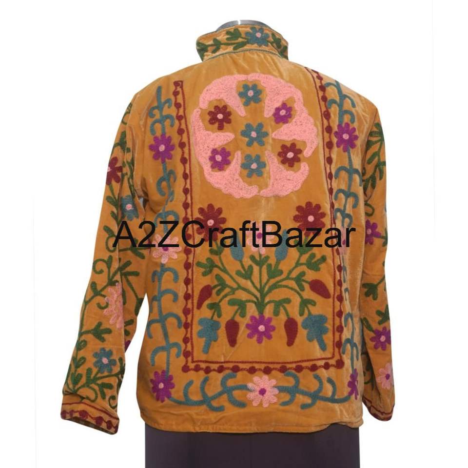 เสื้อแจ็คเก็ตผ้ากำมะหยี่ปักลายซูซานีสำหรับผู้หญิง งานแฮนด์เมด พิมพ์ลายดอกไม้ สไตล์โบฮีเมียน เสื้อคลุมฤดูหนาว ผ้าฝ้ายทอ แต่งลายปัก พร้อมโลโก้ด้านหน้า