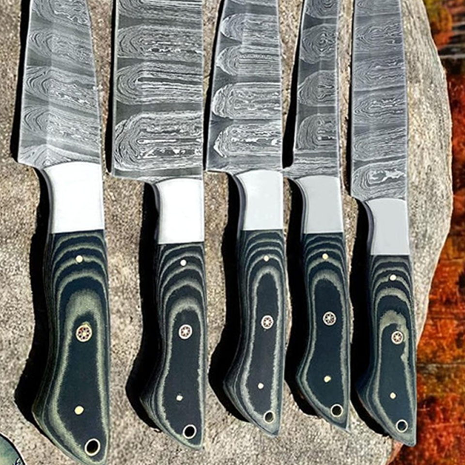 ชุดมีดทำครัวปลอมแปลง5ชิ้นชุดเชฟมืออาชีพทำด้วยมือมีด้ามจับเหล็ก G10ดามัสกัส