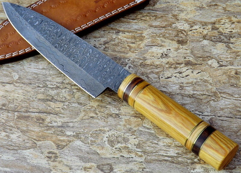 มีดทำครัวมืออาชีพสไตล์ญี่ปุ่น ผลิตในปากีสถาน คุณภาพสูง ผลิตจากเหล็กดามัสกัส VG-10 ด้ามไม้ ใช้กับเครื่องล้างจานได้