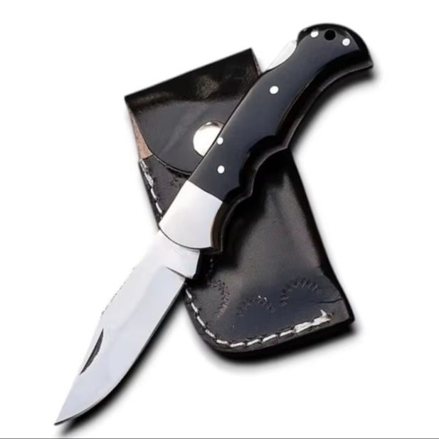 มีดพับทำมือระดับมืออาชีพ สแตนเลสสตีล สำหรับล่าสัตว์ ตั้งแคมป์ กิจกรรมกลางแจ้ง OEM/ODM ระบบล็อคด้านหลัง ด้ามเรซิ่นอีพ็อกซี่ ความแข็ง 58 HRC รับประกัน 3 ปี