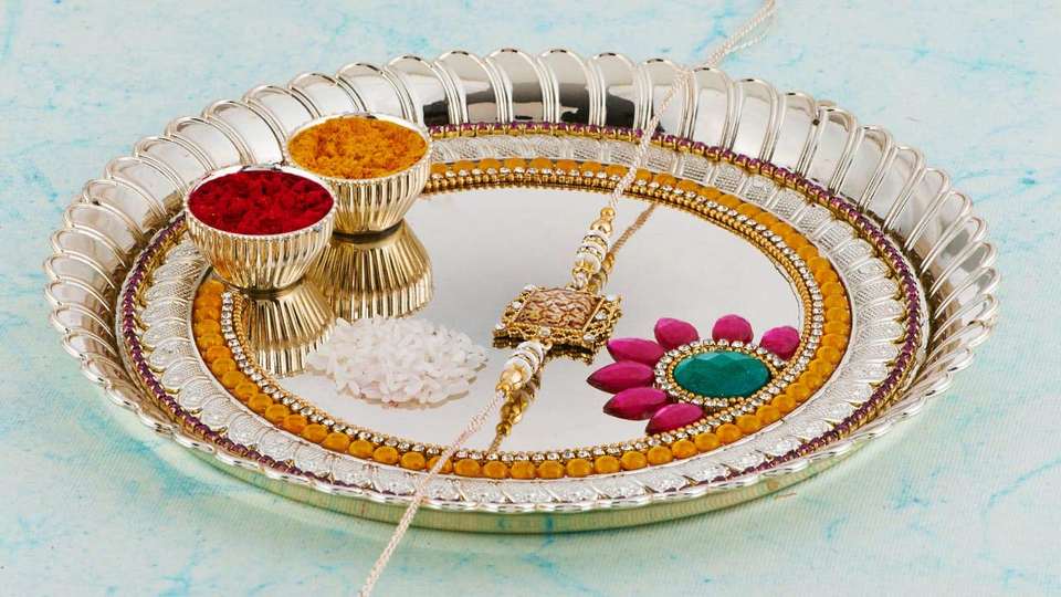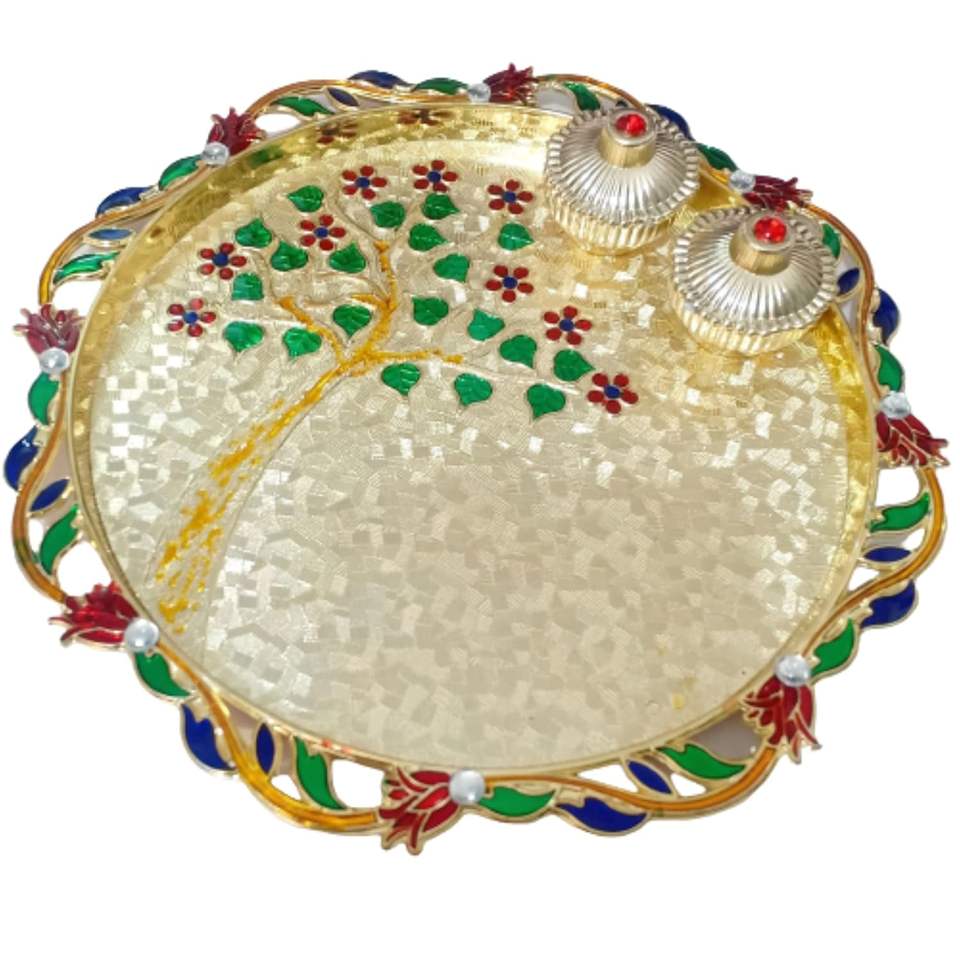 แผ่น Pooja Thali ทำด้วยมือพร้อมดอกไม้ออกแบบลายนูนสำหรับตกแต่งบ้านสำนักงานของขวัญ