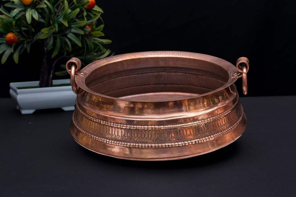 อ่างแช่เท้าทองแดงแท้ทำมือ สำหรับสปาบำบัดเท้า พร้อมดีไซน์ลายตอกโบราณ อุปกรณ์ตกแต่งห้องน้ำสุดหรู