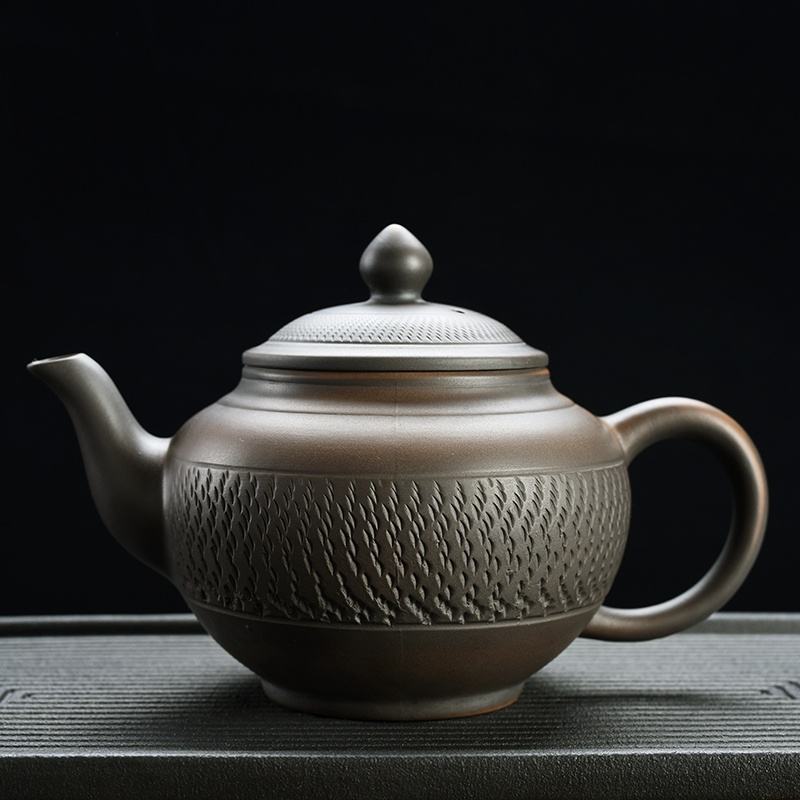 ชุดน้ำชาเซรามิกดินเผาสีม่วงทำมือ เป็นมิตรกับสิ่งแวดล้อม ลายแกะสลักด้วยมีดเดี่ยวแบบดั้งเดิม เหมาะสำหรับใช้ในบ้าน