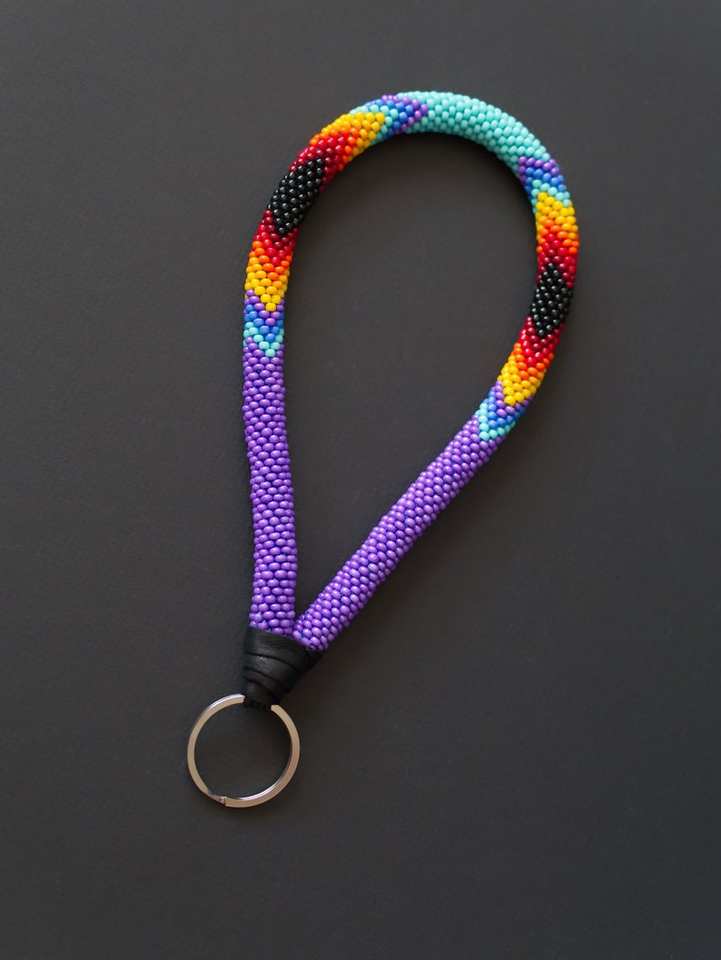 พวงกุญแจลูกปัดสไตล์พื้นเมืองสีม่วงทำมือ งานลูกปัดโบโฮ สไตล์มินิมอล พวงกุญแจแบบสายรัดข้อมือ สร้อยข้อมือลูกปัดสไตล์ชาติพันธุ์