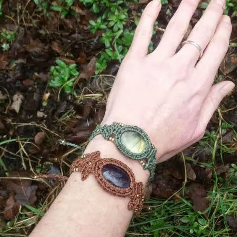 สร้อยข้อมือมิตรภาพทรงพีระมิดทำมือ ชุบทอง ประดับด้วยพลอยอะมีทิสต์และลาบราโดไรต์ วินเทจ พร้อมเชือกหลากสี ฝังแบบ Bezel ของขวัญ