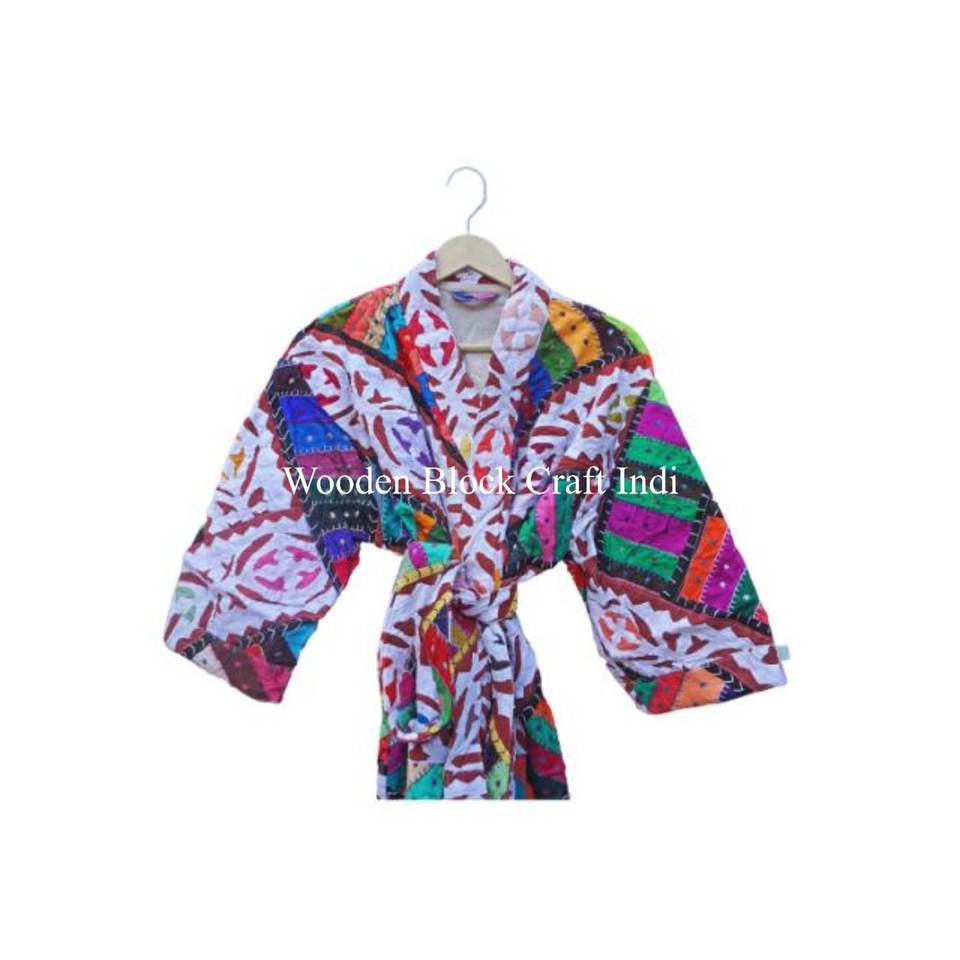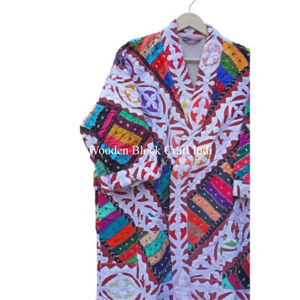 เสื้อคลุมสไตล์กิโมโนทำมือสำหรับผู้หญิง ผ้าฝ้ายอินเดียวินเทจลายดอกไม้ คิมิโนแบบยาว ชุดคลุมอาบน้ำลายดอกไม้ ชุดชายหาด ผ้าคลุมฤดูหนาว