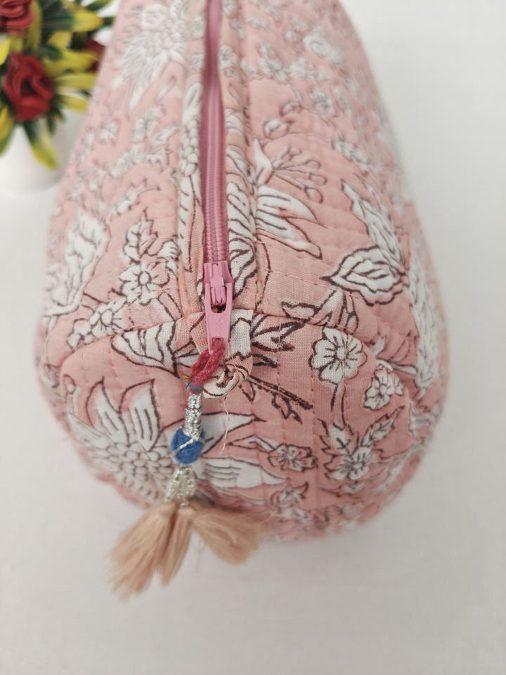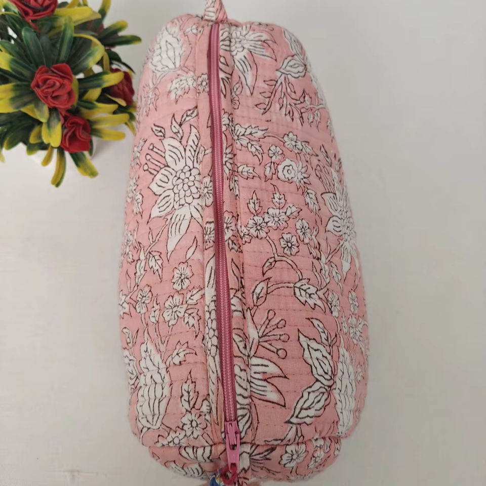 กระเป๋าเครื่องสำอางผ้าคอตตอนลายดอกไม้สีชมพูสำหรับเด็กทารกกระเป๋าเครื่องสำอางสำหรับใช้ในห้องน้ำมีซิปกระเป๋าเครื่องสำอางสำหรับเดินทาง