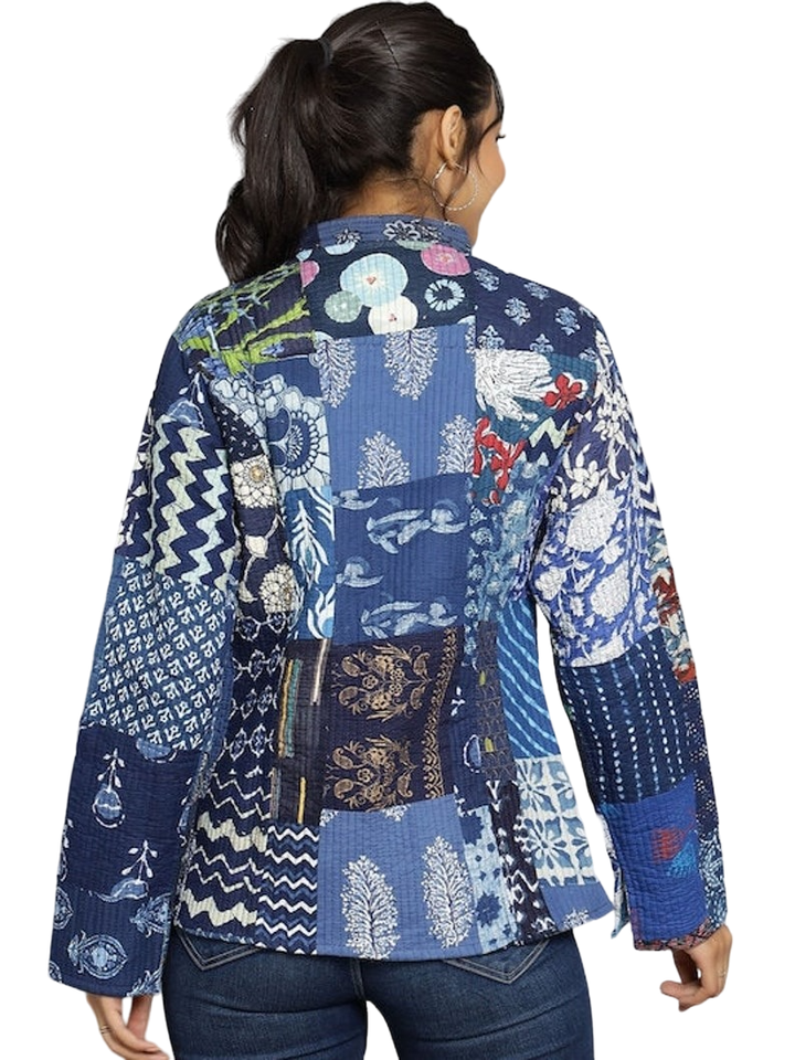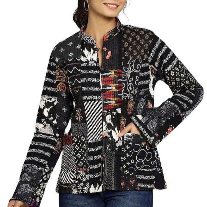 Handmade Quilted Varsity Jacket Unisex Silk Sari Patchwork Winter Coat Short Christmas Gift Handmade Winter Coat Handmade