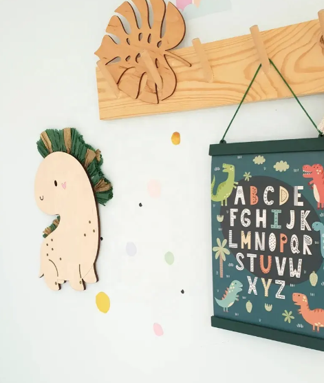 การตกแต่งสถานรับเลี้ยงเด็กไดโนเสาร์ปาล์มทำด้วยมือ-ศิลปะผนังรูปสัตว์ทำจากไม้สำหรับจัดแต่งห้องเด็กทารกและเด็กวัยหัดเดิน