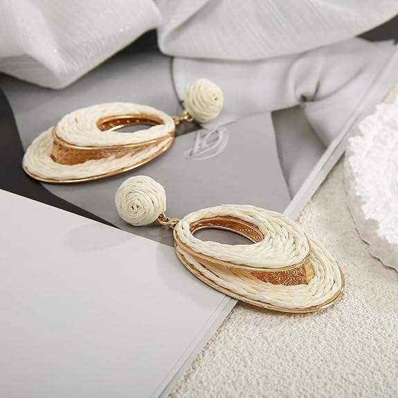 ชื่อหรือคำ:ต่างหูฟางหวายทำด้วยมือห่วงหยดน้ำตา