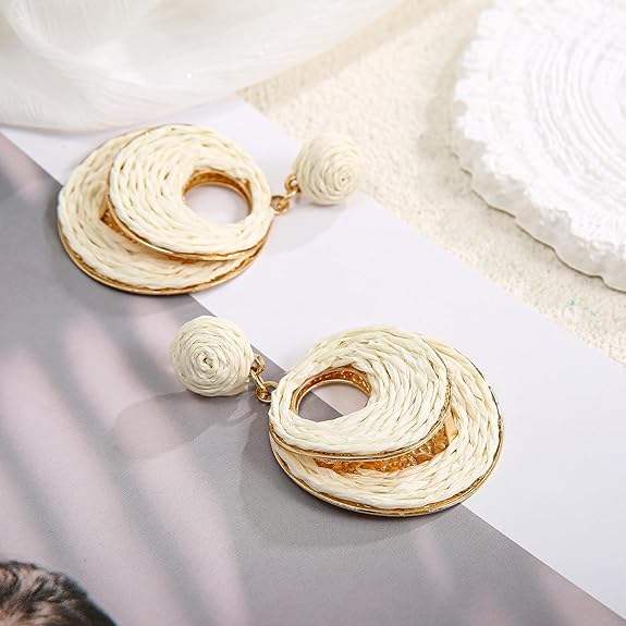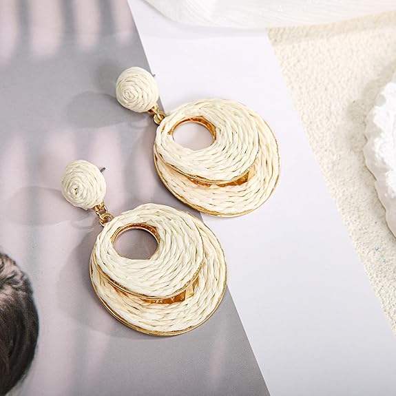 ชื่อหรือคำ:ต่างหูฟางหวายทำด้วยมือห่วงหยดน้ำตา