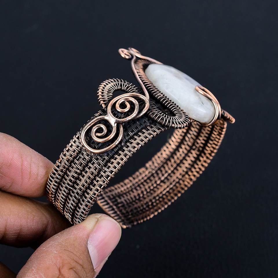 กำไลข้อมือแฟชั่นพลอยมูนสโตนสีรุ้งทำด้วยมือสำหรับผู้หญิงสายทองแดง