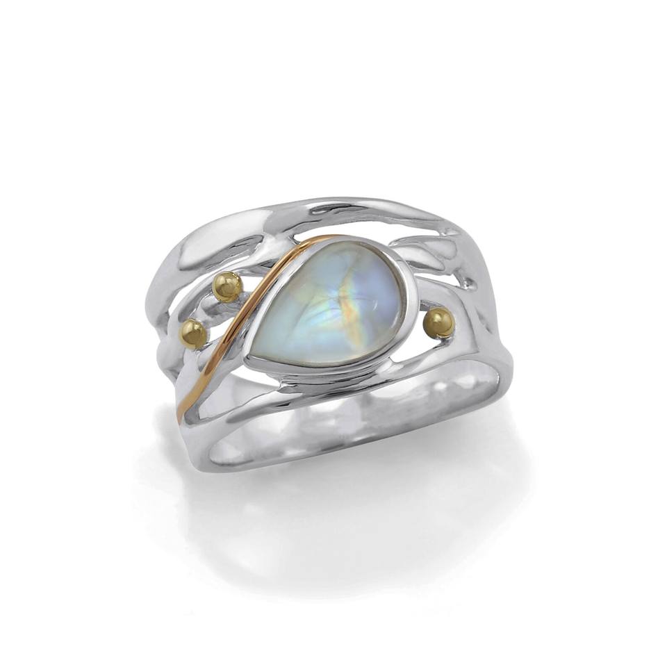 แหวนพลอยมูนสโตนสีรุ้งทำด้วยมือแหวนเงินสเตอร์ลิง925ของขวัญวันเกิดสำหรับผู้หญิงและเด็กผู้หญิง