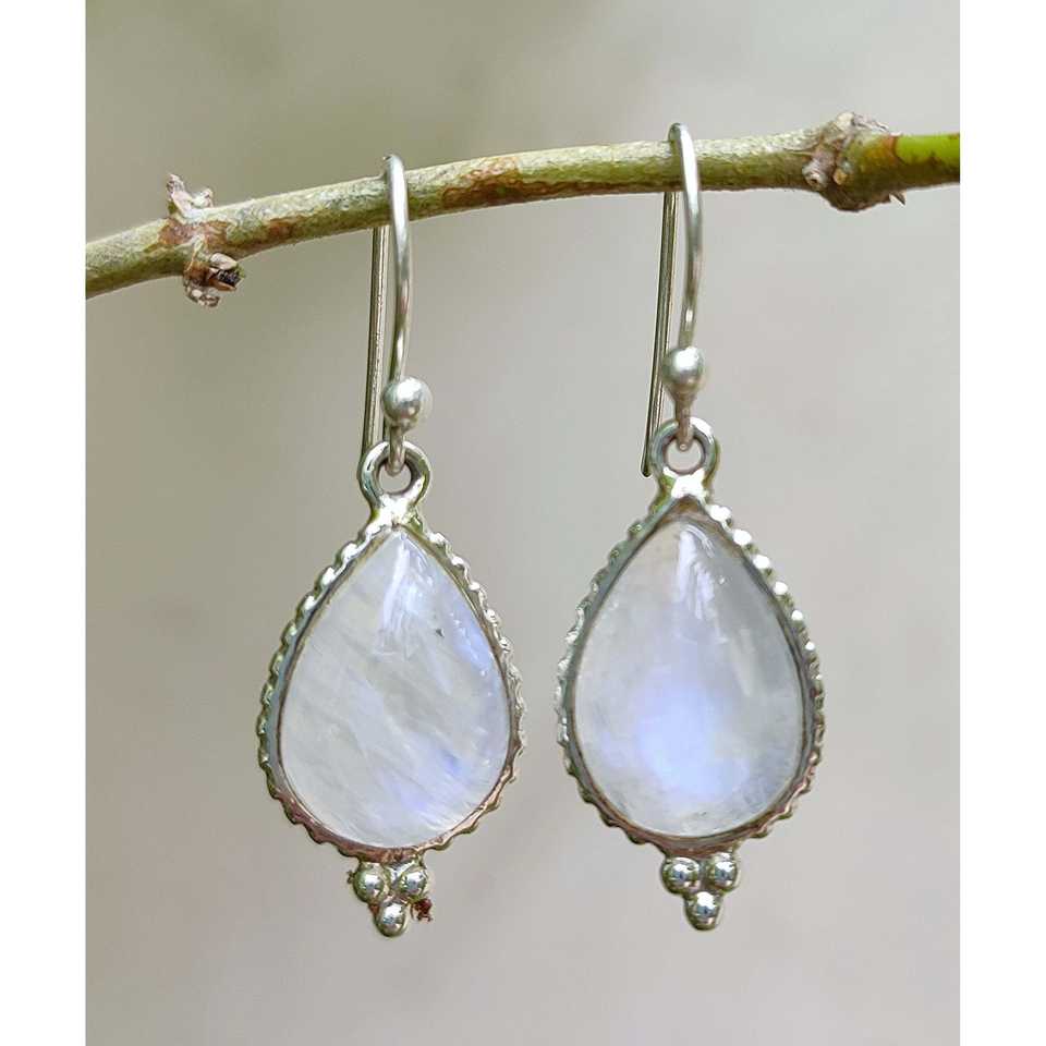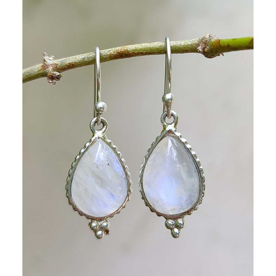 Handmade Rainbow Moonstone Tear Drop Earrings Birthstone Sterling Silver Fashion Jewelry Gift
