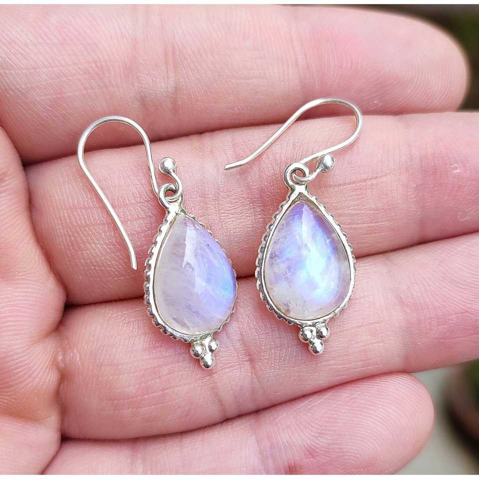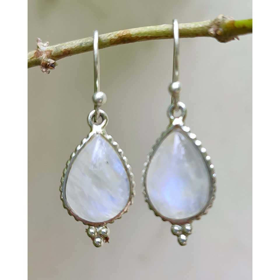 ต่างหูรูปหยดน้ำทำมือจากมูนสโตนสีรุ้ง เงินแท้ประดับทอง ของขวัญปีใหม่สุดพิเศษ