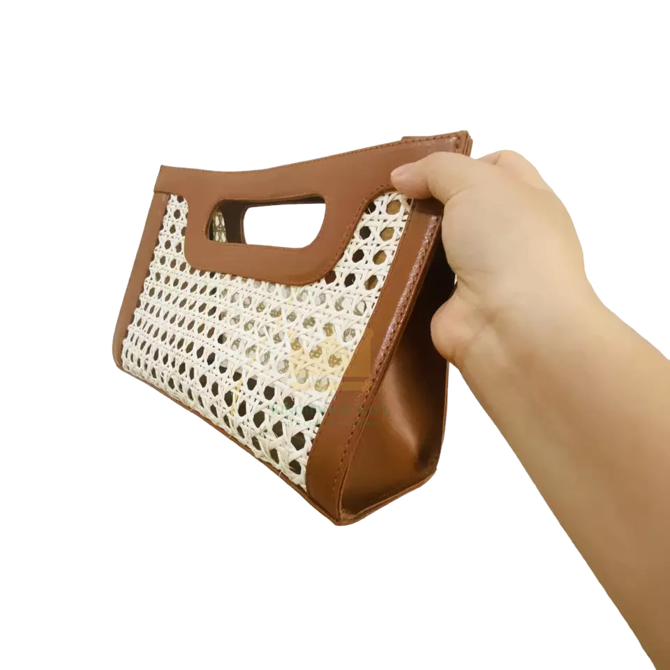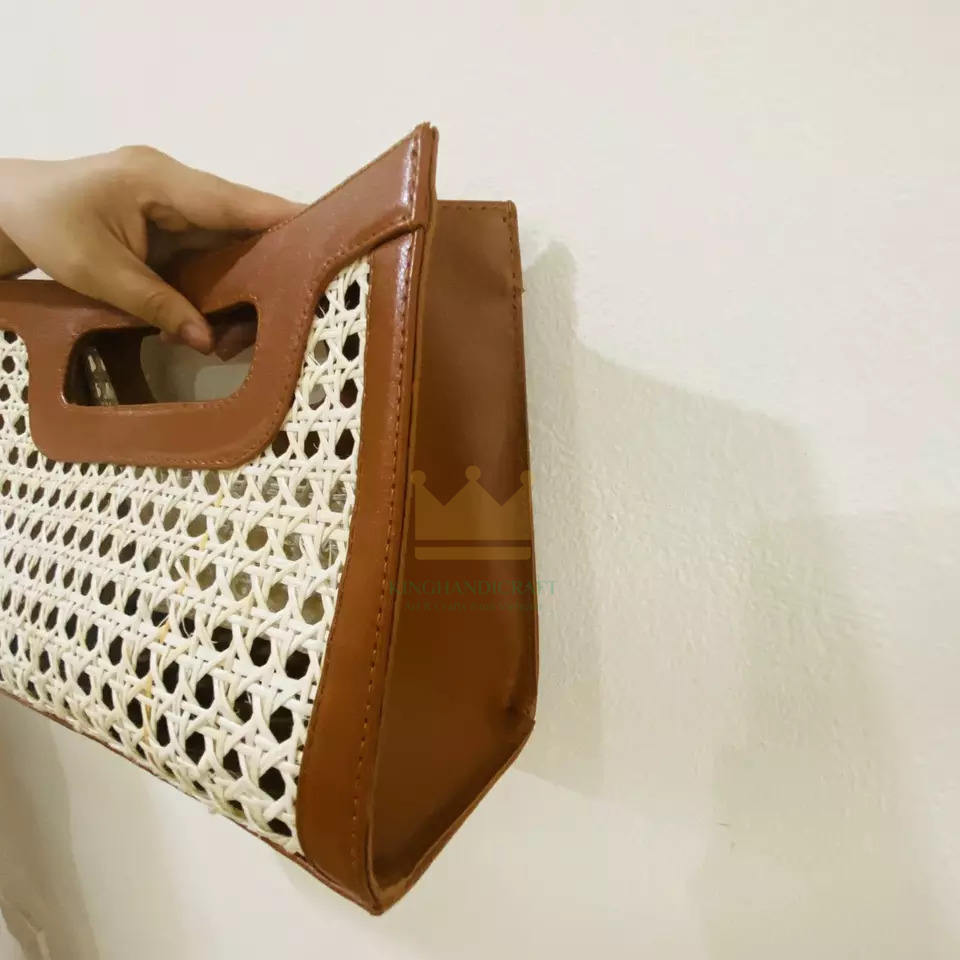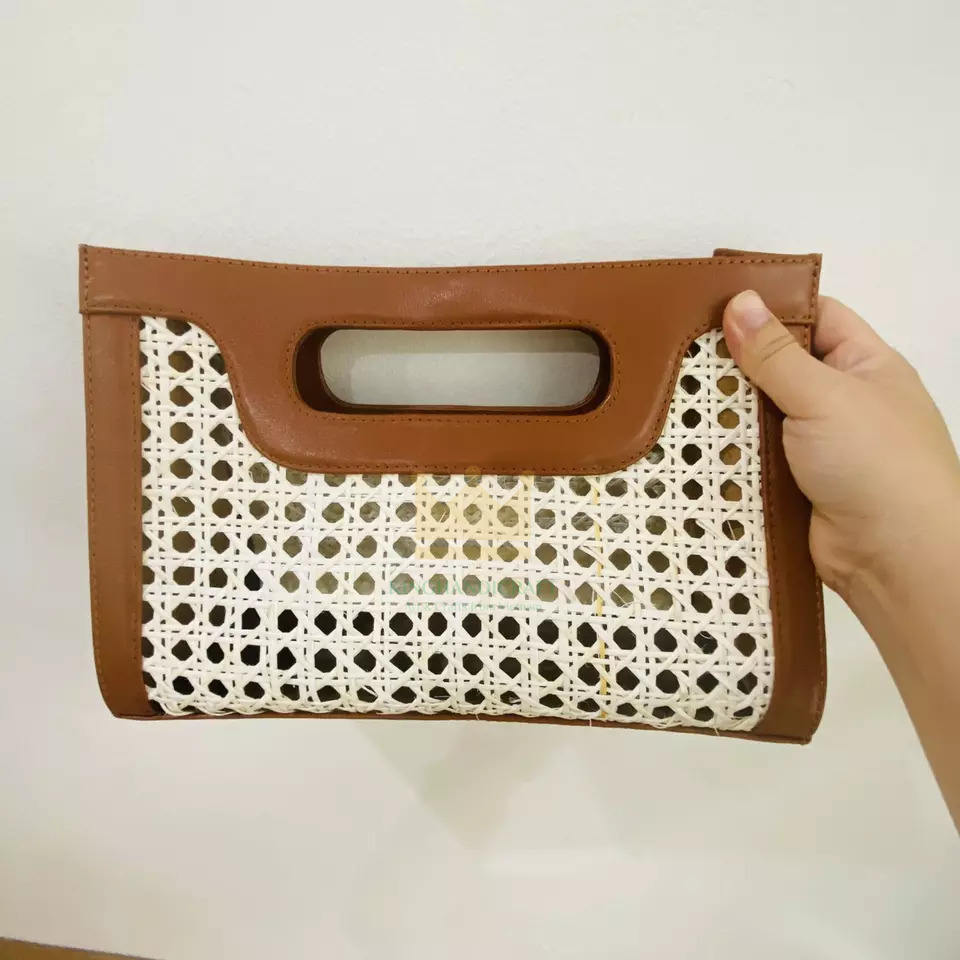 กระเป๋าหวายแฮนด์เมดพร้อมหนังแท้/กระเป๋าสานหวายสไตล์วินเทจ/กระเป๋าหวายบาหลี