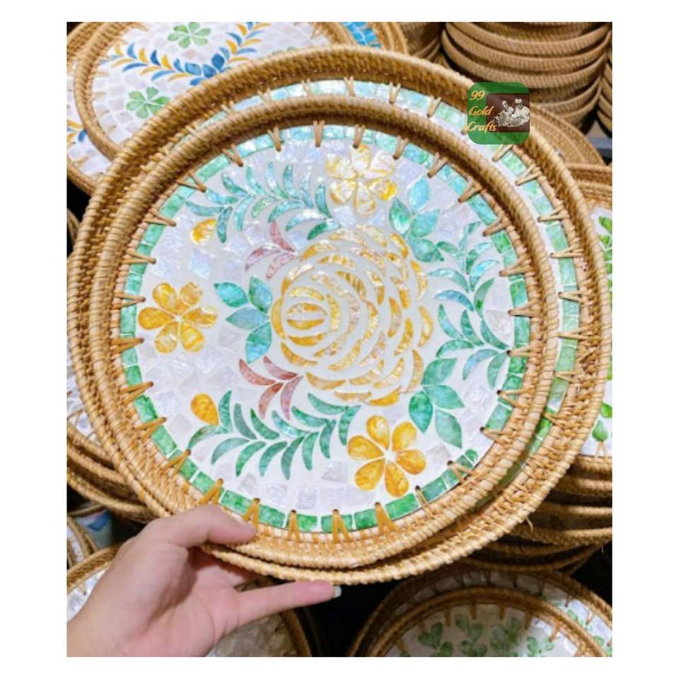 ถาดไม้ไผ่หวายแฮนด์เมดจากเวียดนามสำหรับกาแฟอาหารเช้าของตกแต่งบ้านแบบชนบทเป็นมิตรกับสิ่งแวดล้อม