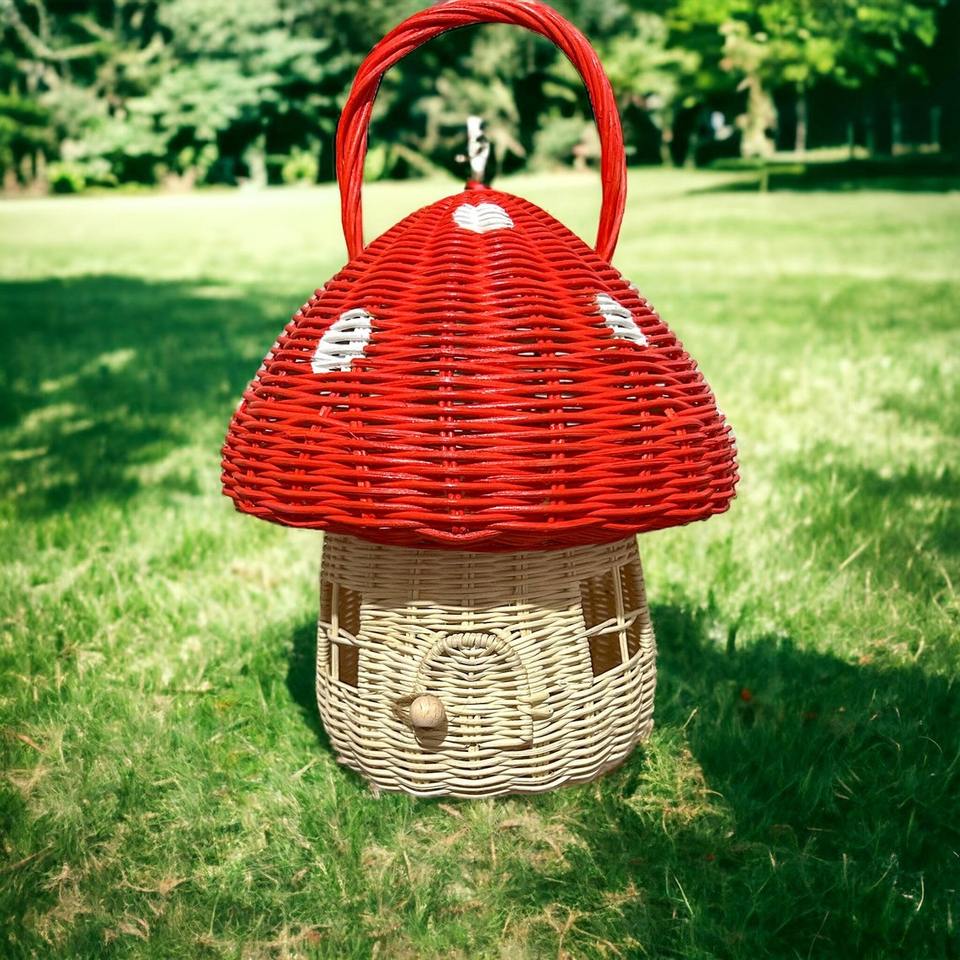 Handmade Rattan Basket Mushroom Saver Lid Wicker Mini Doll Toy Tabletop Trash Rattan Wall Hanging Adornment Sundries Door Basket