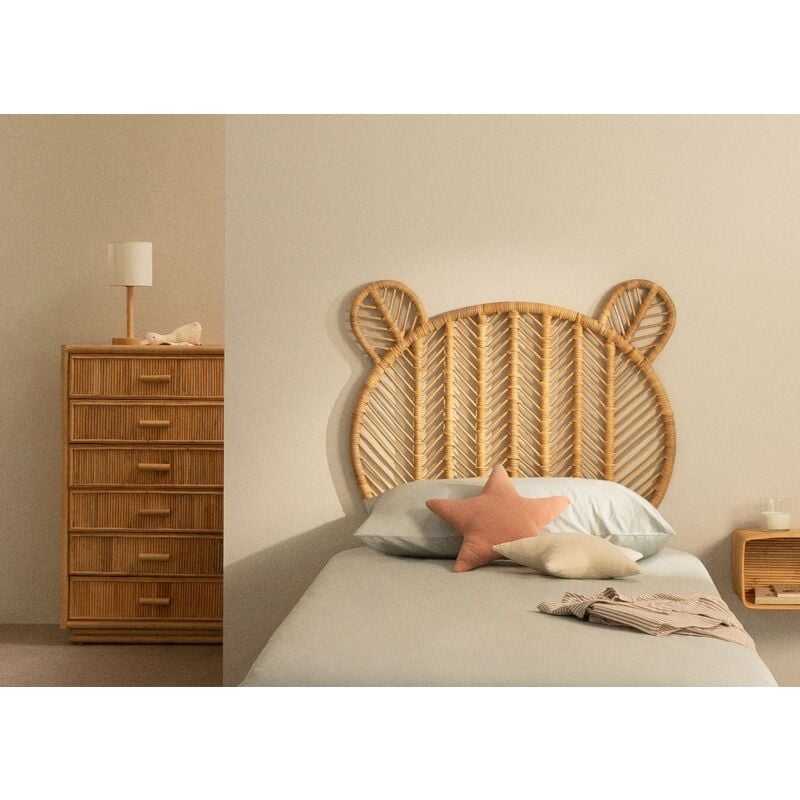 หัวเตียงหวายทรงหมีทำด้วยมือสำหรับเด็กอุปกรณ์ตกแต่งเตียงหวายธรรมชาติเฟอร์นิเจอร์สำหรับสถานรับเลี้ยงเด็กเป็นมิตรกับสิ่งแวดล้อมผู้จำหน่ายจากเวียดนาม