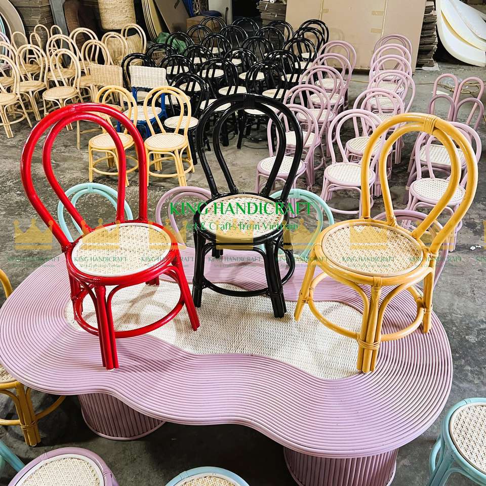 เก้าอี้หวายทำด้วยมือสำหรับเด็ก-มีสีสันสดใสและสร้างขึ้นอย่างมีศิลปะสำหรับห้องเด็ก