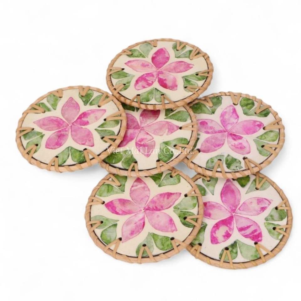ที่รองแก้วหวายทำมือ ลายมุก สำหรับเสิร์ฟชา กาแฟ และตกแต่งโต๊ะอย่างมีสไตล์