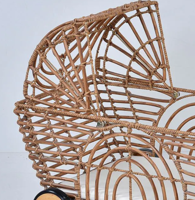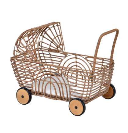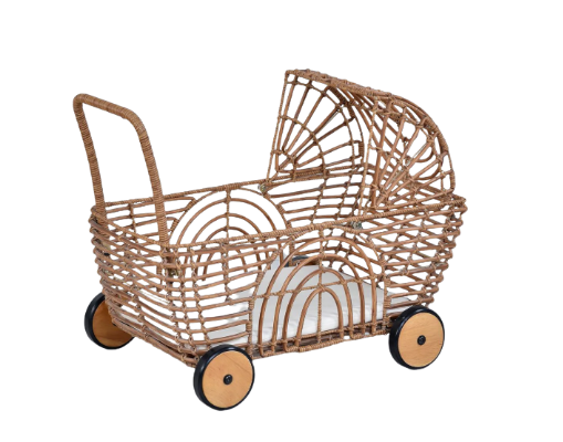 รถเข็นตุ๊กตาหวายทำมือพร้อมล้อไม้ สไตล์วินเทจ ของเล่นรถเข็นหวายสำหรับเด็ก ตกแต่งห้องเด็ก นำเข้าจากเวียดนาม