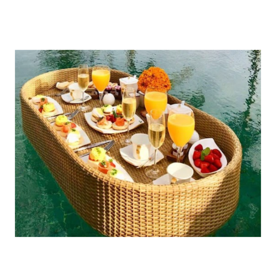 ถาดหวายลอยน้ำสำหรับสระน้ำทำด้วยมือจากเวียดนามทนทานต่อน้ำโต๊ะถาดเสิร์ฟสำหรับรีสอร์ทสปาใช้งานกลางแจ้ง