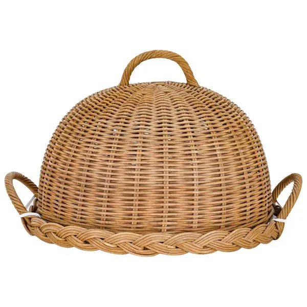 ฝาครอบอาหารหวายสานทำมือ ฝาครอบอาหารหวายป้องกันแมลงวัน มีหูจับ สำหรับห้องครัว ห้องรับประทานอาหาร ป้องกันแมลงวันและยุง