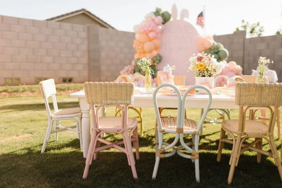 เก้าอี้เด็กทำมือจากหวาย ปลอดภัย ธรรมชาติ งานสานมือ เฟอร์นิเจอร์เด็กสำหรับตกแต่งห้องนั่งเล่นกลางแจ้งและงานอีเว้นท์
