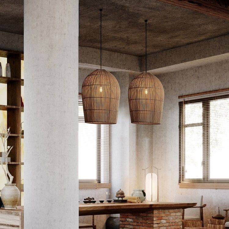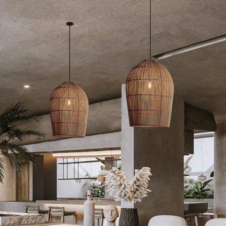 โคมไฟหวายทำมือทรงรี ขั้ว E27 LED หัวเดียว สำหรับโรงแรมและเกสต์เฮาส์ ขนาดเส้นผ่านศูนย์กลาง 30 ซม. 40 ซม. 50 ซม.