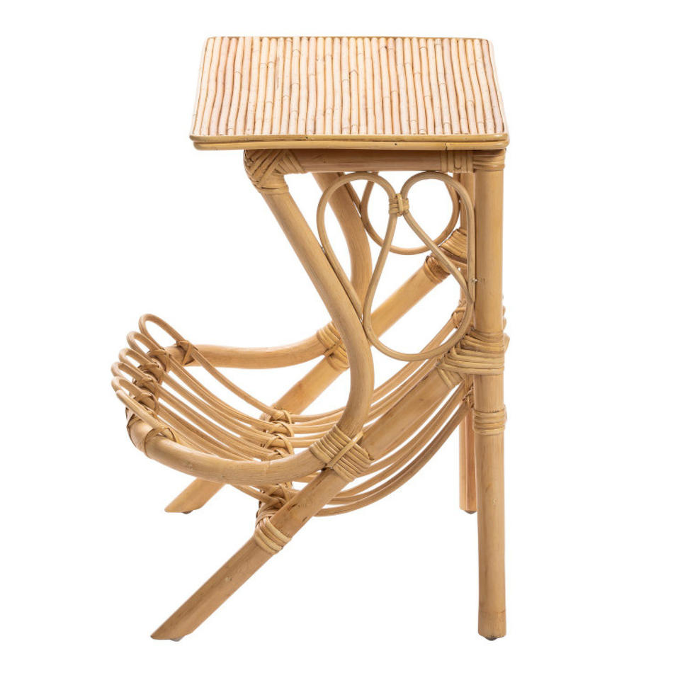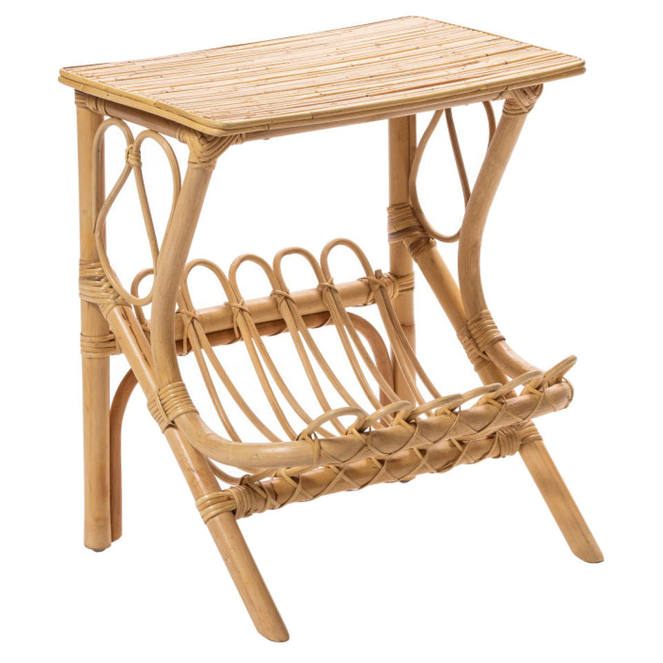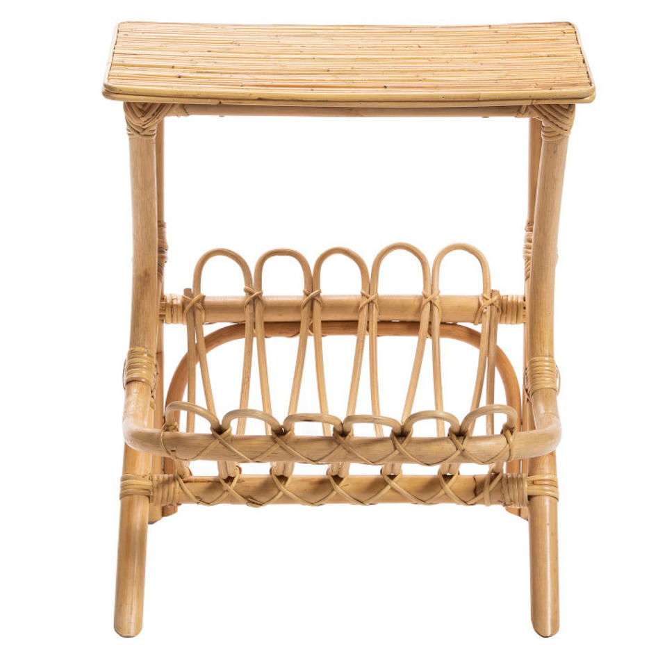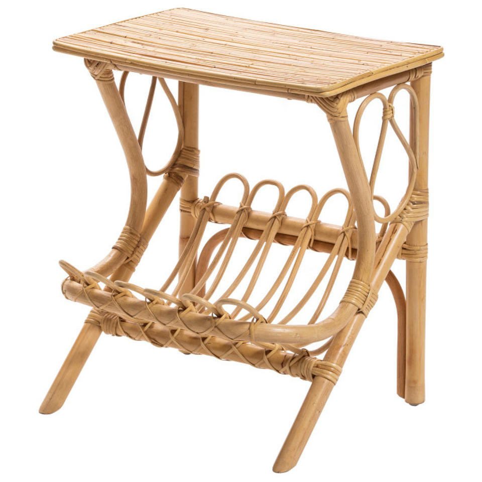 โต๊ะข้างหวายทำด้วยมือพร้อมชั้นวางนิตยสาร | โต๊ะวางปลายไม้ไผ่สไตล์มินิมอล | เฟอร์นิเจอร์เน้นสไตล์โบโฮ