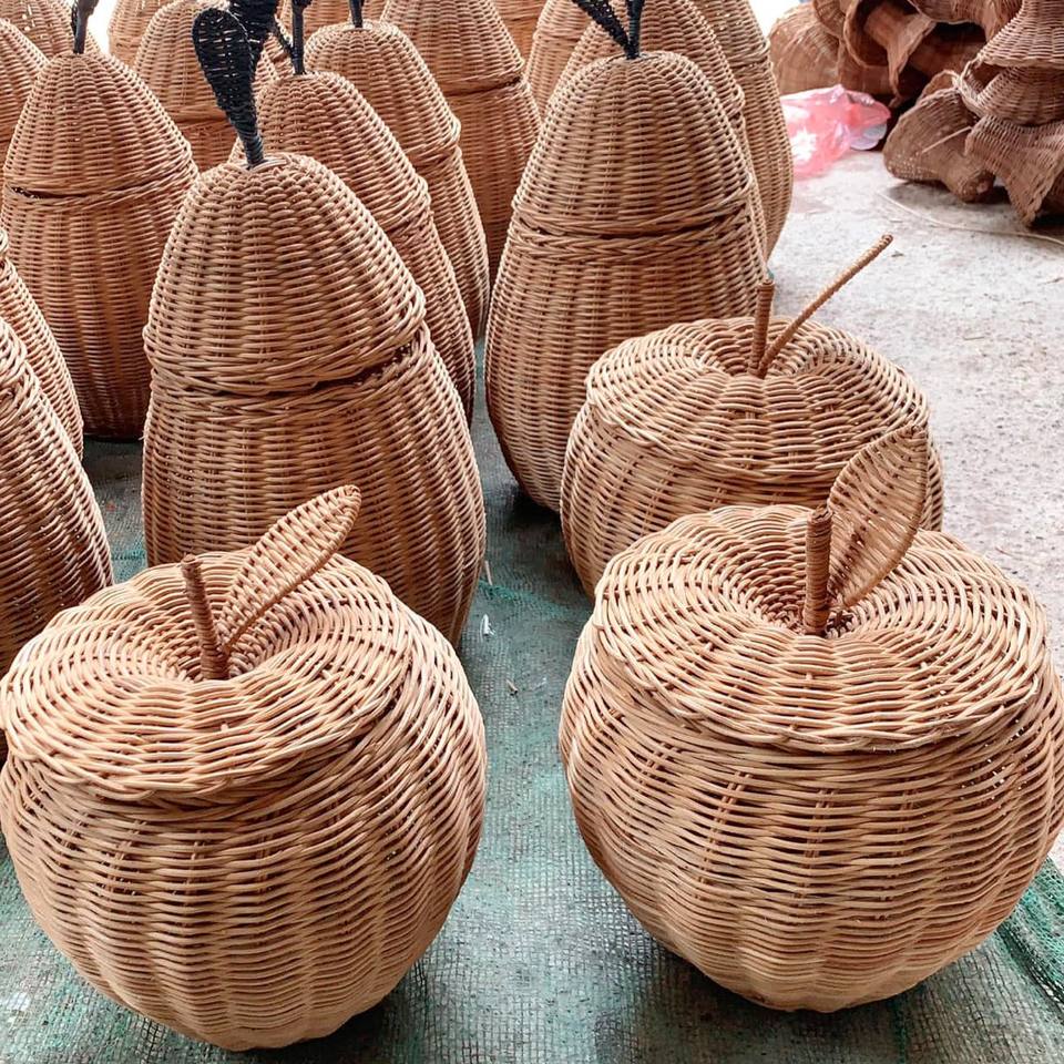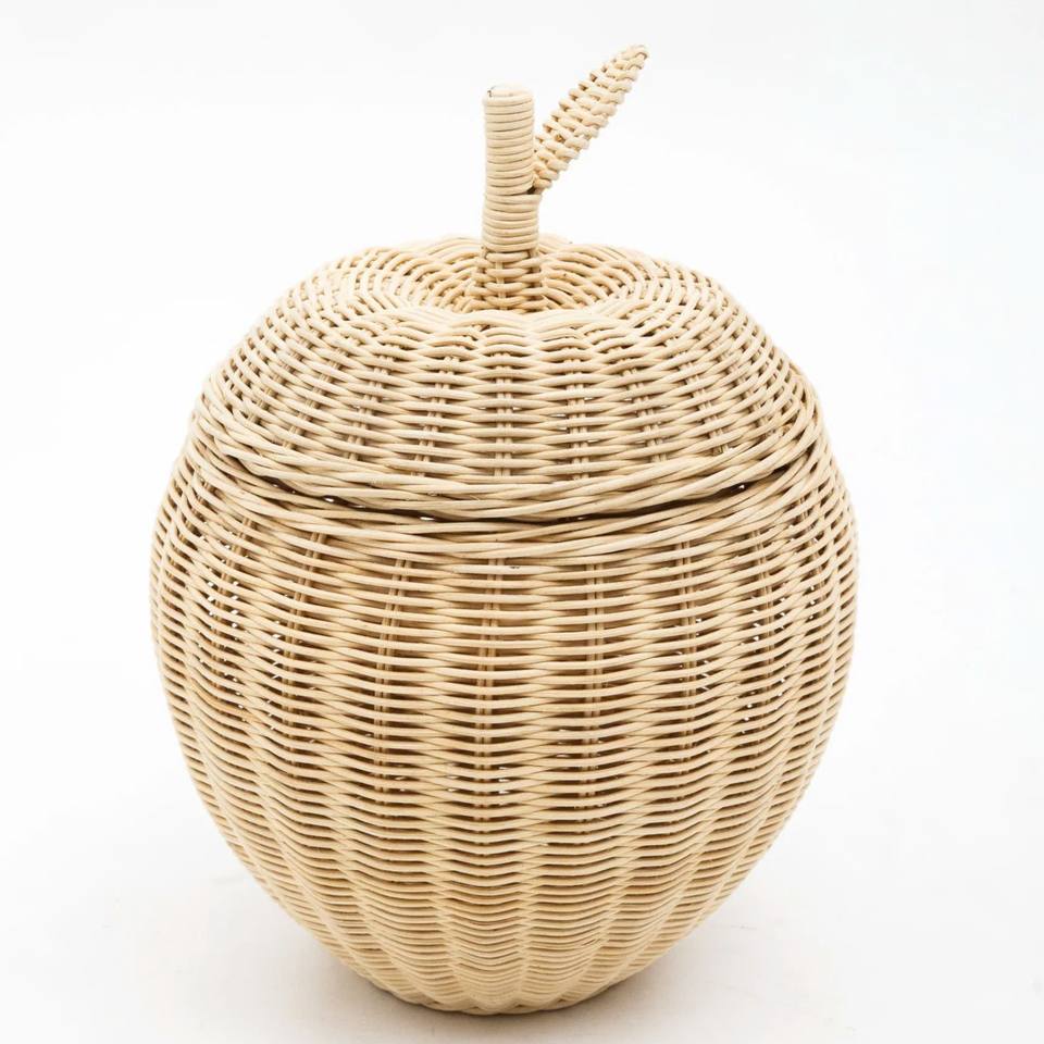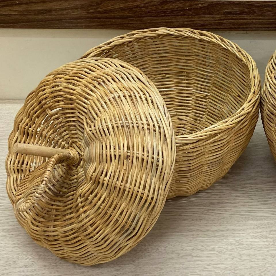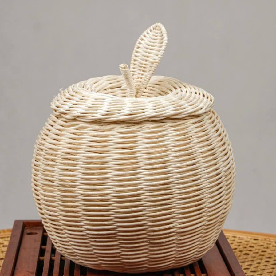 ตะกร้าเก็บของหวายสานรูปทรงแอปเปิ้ลพร้อมฝาปิด ดีไซน์รักษ์โลก สำหรับจัดเก็บผลไม้และตกแต่งบ้าน