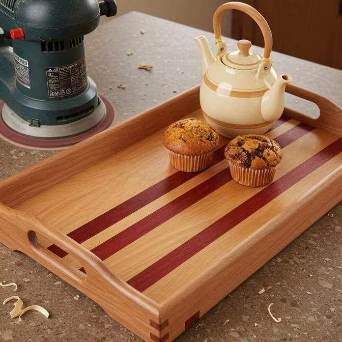 ถาดไม้ดิบทำมือสำหรับการใช้งานที่เป็นมิตรต่อสิ่งแวดล้อมในบ้านสไตล์ธรรมชาติ ห้องครัวแบบเรียบง่าย หรือร้านกาแฟออร์แกนิก