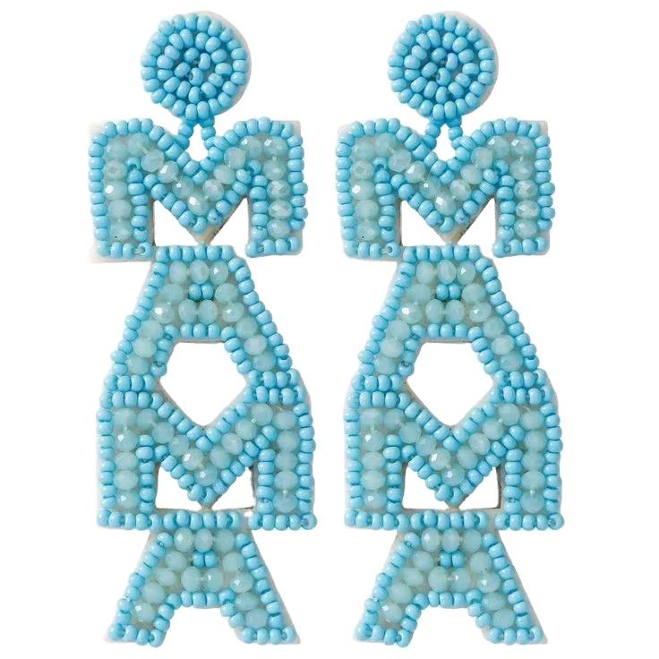 Handmade Ready to Ship Western Style Mama Alphabet Women Beaded Earrings Rhinestone seed beads embroidery earring