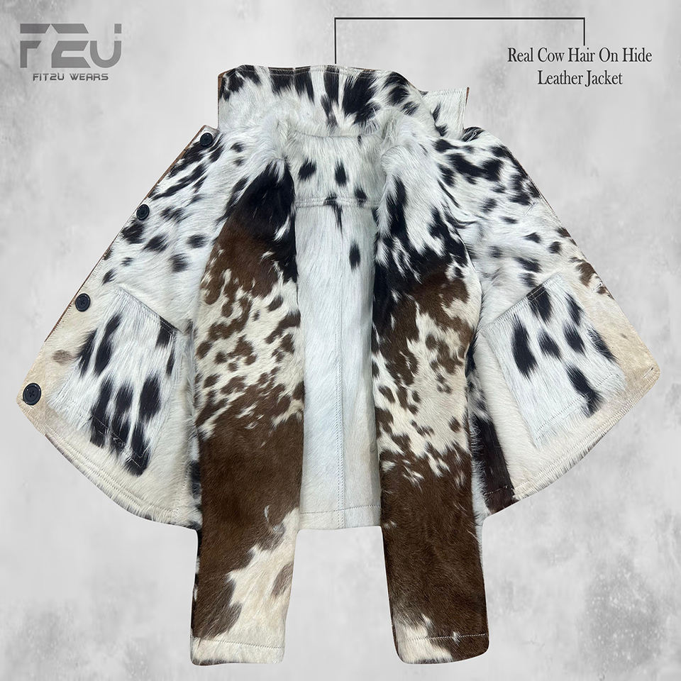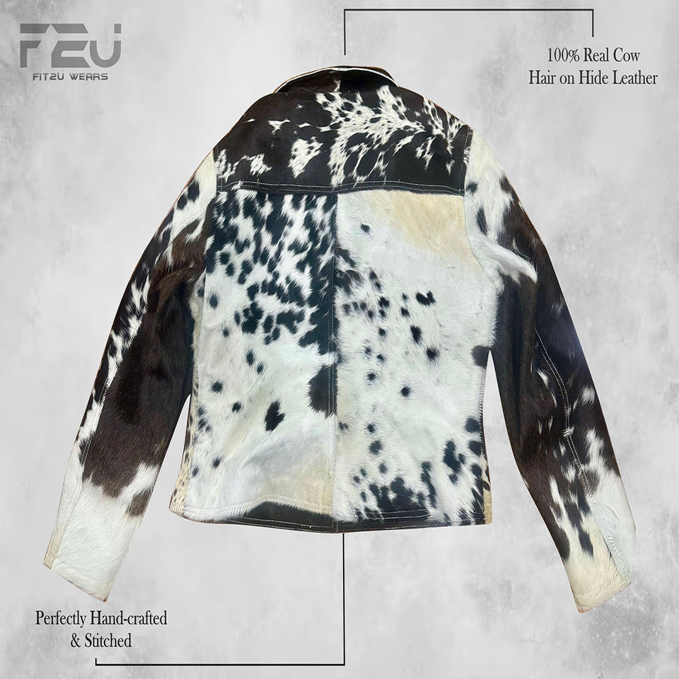แจ็กเก็ตหนังแท้ทำด้วยมือเสื้อแจ็กเก็ตหนังวัวแท้พิมพ์ลายวัวสไตล์วินเทจ