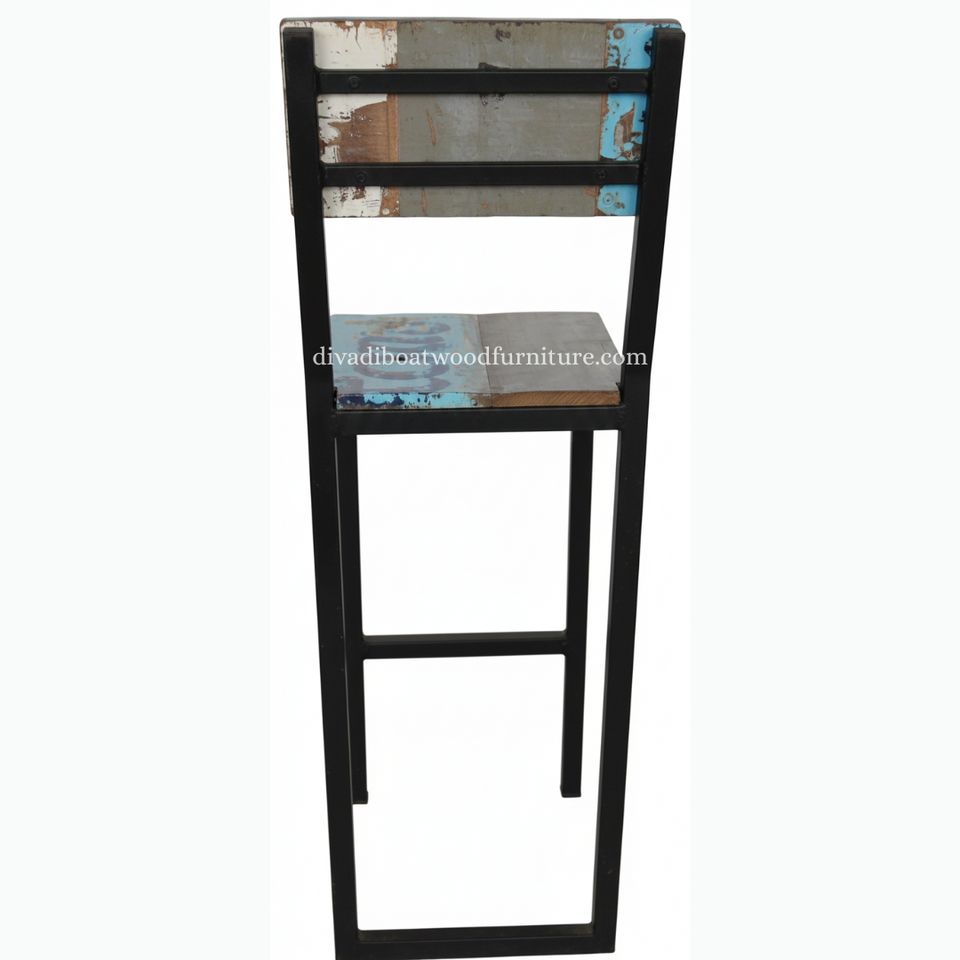 เก้าอี้บาร์ไม้เรือรีไซเคิลทำมือ โครงเหล็กสีดำ เก้าอี้สูงไม้รีไซเคิล เฟอร์นิเจอร์อุตสาหกรรมรักษ์โลกสำหรับห้องครัว