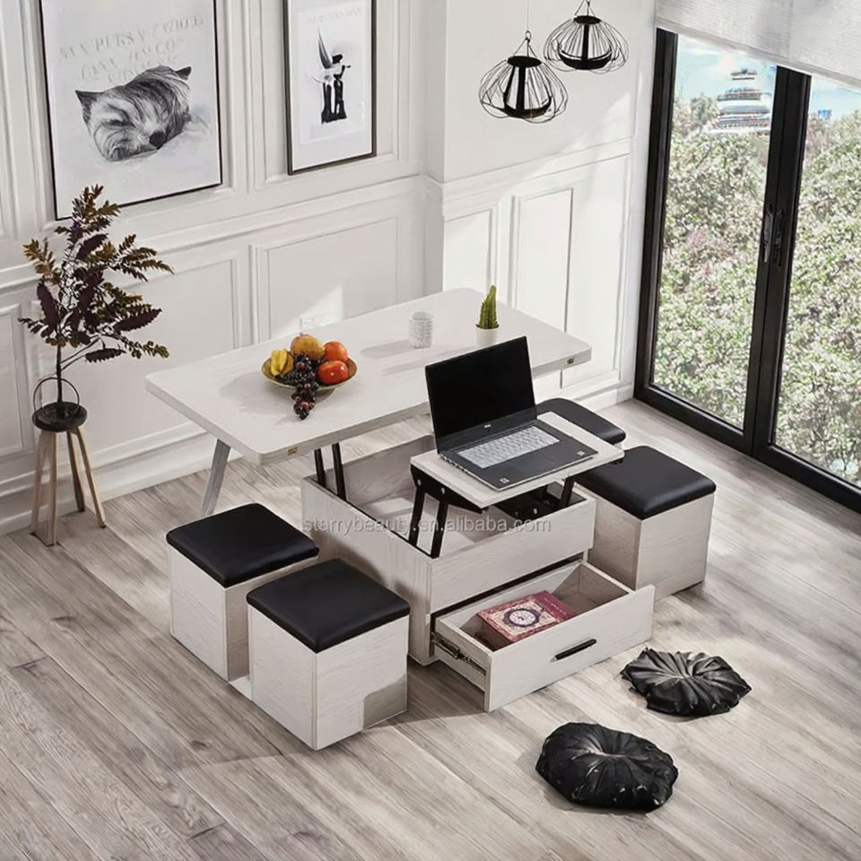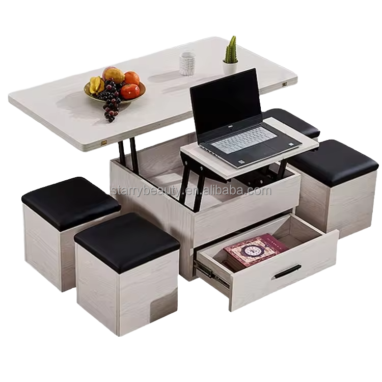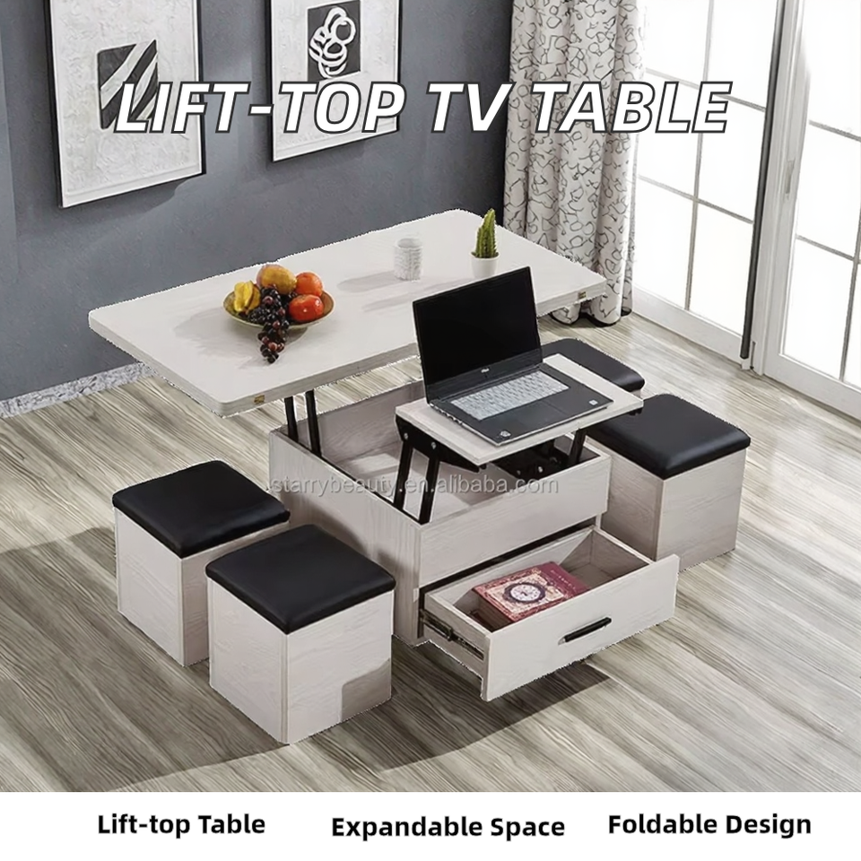 ชุดโต๊ะวางทีวีและโต๊ะกาแฟไม้ทรงสี่เหลี่ยมผืนผ้าแบบยกได้ ดีไซน์ทันสมัย ทำด้วยมือ พร้อมที่เก็บของและดีไซน์แบบซ้อนได้