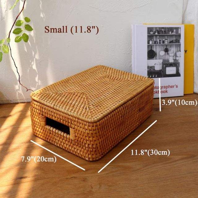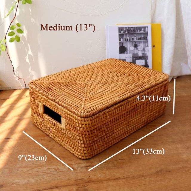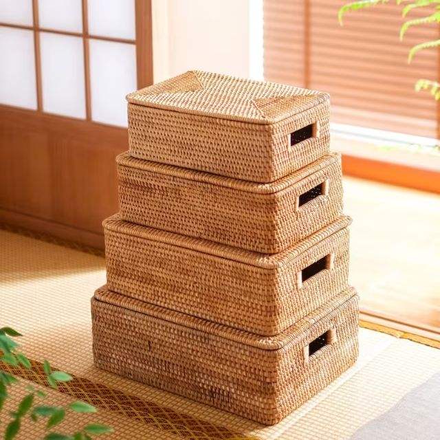 Handmade Rectangle Woven Plastic PP Rattan Basket Lid Handwoven Vietnamese Storage Wicker Container for Bathroom & Living Room