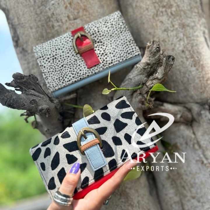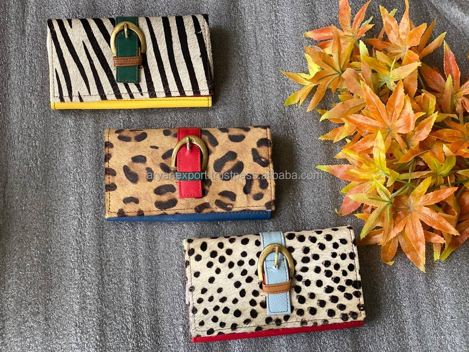 กระเป๋าคลัทช์หนังขนสัตว์พิมพ์ลายสัตว์ทำด้วยมือมีหลายสีทันสมัยสำหรับผู้หญิงกระเป๋าใส่บัตรเอทีเอ็มแบบพับได้
