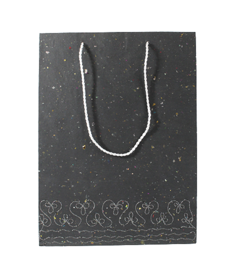 ถุงของขวัญงานฝีมือทำจากกระดาษอาร์ตผ้าฝ้ายรีไซเคิล ปักลายด้วยด้ายเมทัลลิกสีเงินประกายมุก