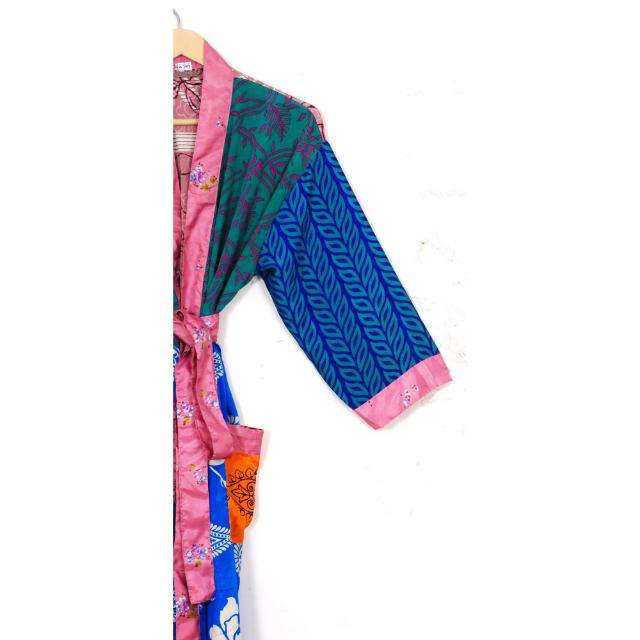 ชุดกิโมโนผ้าไหมส่าหรีของผู้หญิงแบบอินเดียทำด้วยมือชุดคลุมด้านหน้าแห้งเร็วระบายอากาศได้ดีมีเชือกผูกสำหรับปิดฤดูร้อน