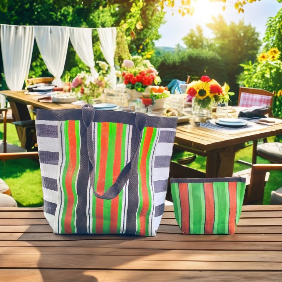 กระเป๋าชายหาดทำจากไนลอนรีไซเคิลงานแฮนด์เมดกระเป๋าผ้าทอลายทางแบบดั้งเดิมอินเดียใช้ซ้ำได้สินค้าในครัวเรือน