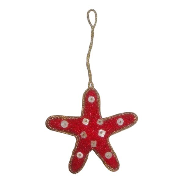ผ้าทำด้วยมือสีแดงตกแต่งงานปาร์ตี้รูปทรงดาวที่ไม่ซ้ำใครด้วยการปักลาย zari ลูกปัดสำหรับประดับต้นคริสต์มาสที่บ้าน