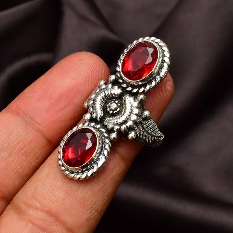 แหวนเงินแท้ประดับโกเมนแดงทำมือ แหวนพลอยประจำเดือนเกิด แหวนพลอยแดงธรรมชาติ ของขวัญสำหรับผู้หญิง