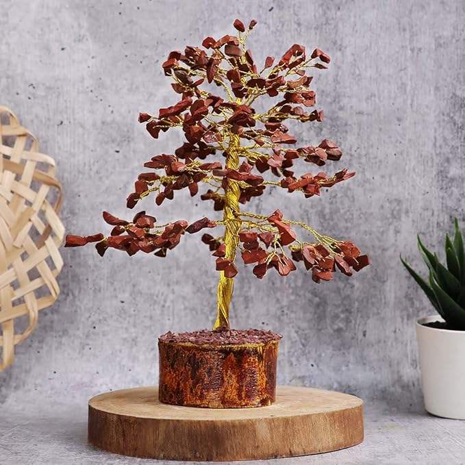 งานฝีมือหินกึ่งมีค่าประดับคริสตัลบอนไซประดับด้วยแจสเปอร์สีแดงทำด้วยมือสำหรับบ้านสำนักงานจิตวิญญาณของฮวงจุ้ย
