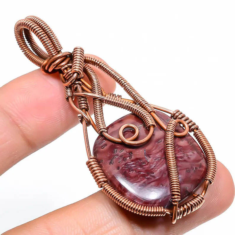 จี้หินแจสเปอร์สีแดงทำมือ หุ้มลวดทองแดงโบราณ ชุบทอง 18K หรูหรา ประดับอัญมณีธรรมชาติ สำหรับงานแต่งงาน งานหมั้น งานเลี้ยง