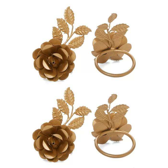 แหวนผ้าเช็ดปากโลหะเคลือบผงสีแดงทำด้วยมือแหวนผ้าเช็ดปากแฟนซีที่ดีที่สุดพร้อมแหวนผ้าเช็ดปากดอกไม้ดีไซน์ศิลปิน