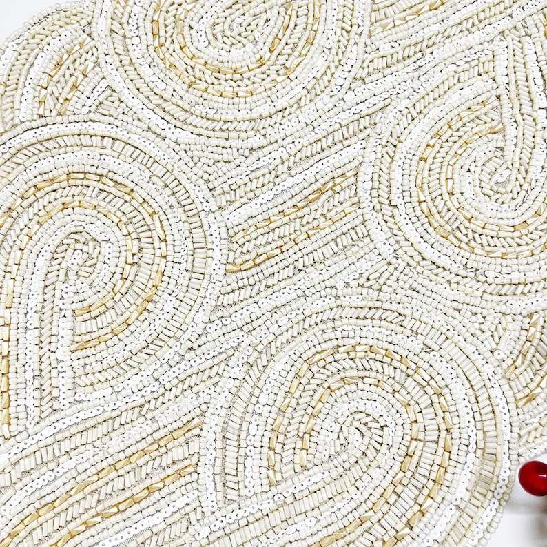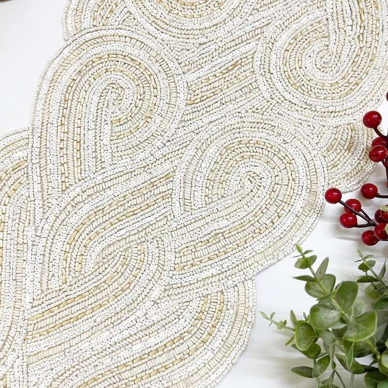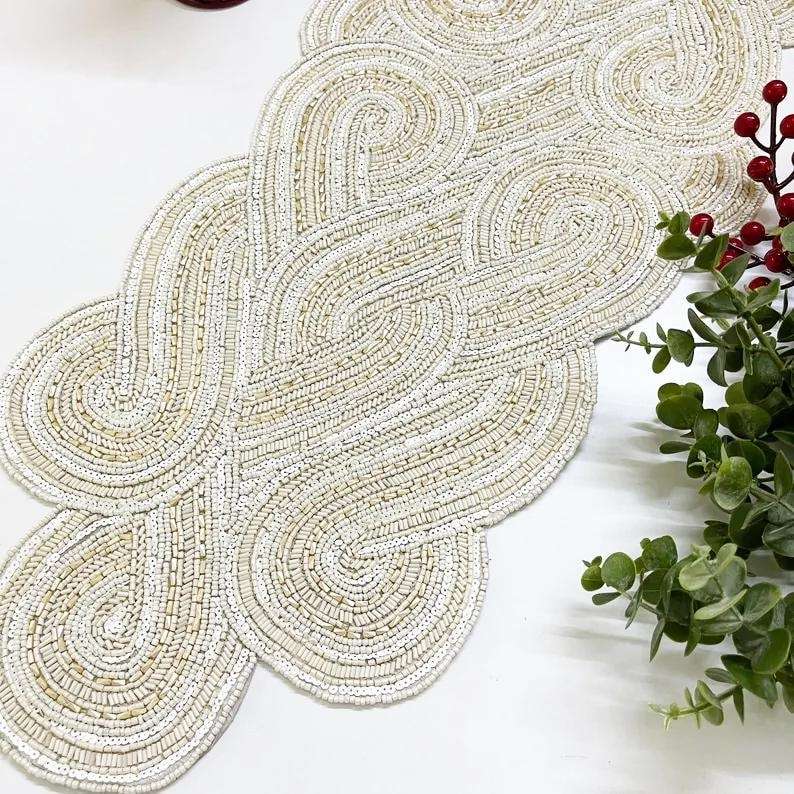 ผ้าปูโต๊ะลูกปัดลายดอกไม้สีแดงสีขาวงานแฮนด์เมดผ้าคาดโต๊ะแบบอินเดียปักสำหรับงานแต่งงานของตกแต่งบ้าน