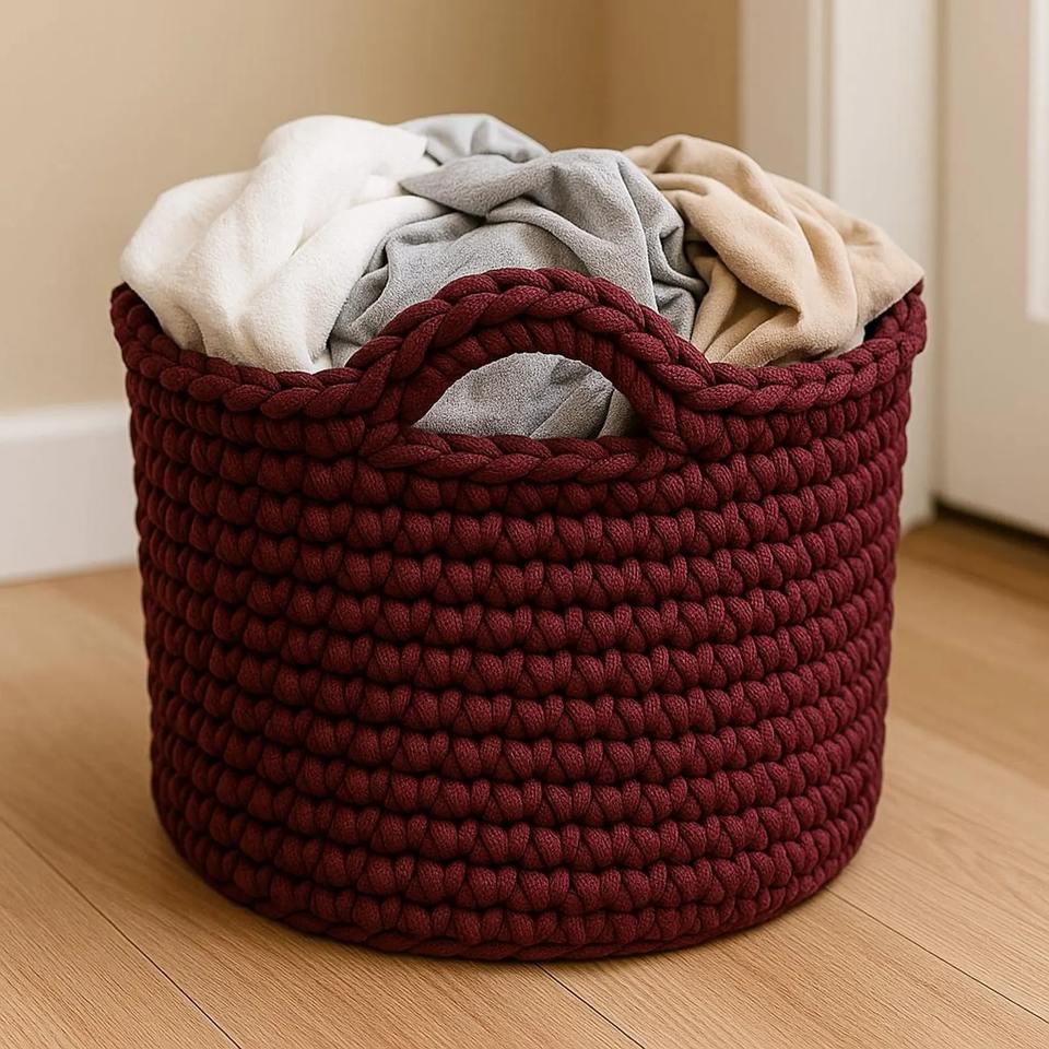 ตะกร้า macrame ทำด้วยมือสีแดงโซลูชันการจัดเก็บที่หรูหราสำหรับตกแต่งบ้านห้องเด็กเล่นและโต๊ะเครื่องแป้งใช้จากอินเดีย